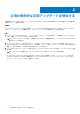 表 1. 概要 (続き) 使用例 アップデートのタイプ アップデートの戦略 推奨アプローチ オプションのアップデート (エンド ユーザーがトリガ ー) Dell Command | Update と管理コンソ ールを使用して、Dell サポート サイト から自動的にオプションのアップデー トを提供します(「Dell サポート サイト から自動的にオプションのアップデー トを提供する」参照)。Dell サポート サ イトから自動的にオプションのアップ デートを提供する テストおよび本番環境でのアップデートのテスト、検証、導入に関連する IT ベスト プラクティスの詳細については、www.dell.