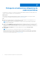 6 Entrega automática de actualizaciones obligatorias desde el sitio de soporte de Dell Los administradores de TI pueden ofrecer actualizaciones obligatorias automáticamente desde el sitio de soporte de Dell mediante Dell Command | Update y una consola de administración. Pasos 1. Implemente la versión más reciente de Dell Command | Update en los terminales mediante una consola de administración, como System Center Configuration Manager (SCCM) o VMware Workspace ONE.