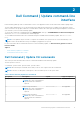 Table 1. Dell Command | Update CLI Commands (continued) CLI options Description Syntax Supported Options Mutually exclusive options These options cannot be used with the specific commands that are listed below: -importSettings, exportSettings, lockSettings.