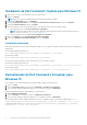 Instalación de Dell Command | Update para Windows 10 1. Abra el archivo .exe que se descargó desde el sitio de soporte de Dell. 2. Haga clic en Instalar. NOTA: Debe tener derechos de administrador para instalar Dell Command | Actualizar. 3. 4. 5. 6. En la pantalla de Bienvenida, haga clic en Siguiente. En la pantalla Acuerdo de licencia, seleccione Acepto los términos del acuerdo de licencia y haga clic en Siguiente. En la pantalla Iniciar instalación, haga clic en Instalar.