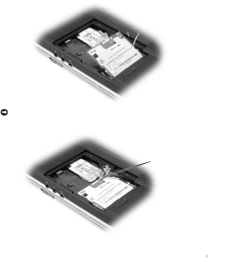 NOTICE: To avoid damaging the Mini PCI card, never place cables on top of or under the card.