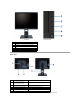 Front View Front panel controls Label Description 1 Energy Modes (default, but configurable) 2 Brightness & Contrast (default, but configurable) 3 Menu 4 Exit 5 Power button (with power light indicator) Back View Back view Label Back View with monitor stand Description VESA mounting holes (100mm) 1 Use To mount the monitor. (Behind attached base plate) 2 Security lock slot To help secure your monitor. 3 Dell Soundbar mounting brackets To attach the optional Dell Soundbar.