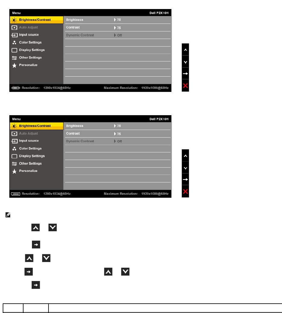 5. Press to enter the slide bar and then use the and buttons, according to the indicators on the menu, to make your changes.