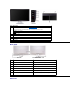 Right view Left view Bottom View Bottom view Label Description 1 DC power cord connector 2 Audio Line-in 3 Audio Line-out 4 HDMI connector 5 DVI connector 6 VGA connector 7 USB upstream connector 8 USB downstream connector Monitor Specifications The following sections give you information about the various power management modes and pin assignments for various connectors of your monitor.