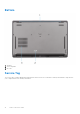 Bottom 1. Speakers 2. Service tag label 3. Air vents Service Tag The service tag is a unique alphanumeric identifier that allows Dell service technicians to identify the hardware components in your computer and access warranty information.