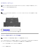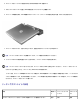 スライドロック — コンピュータを APR に固定するには、ロックを APR の前面方向(ロック位置)に移動します。イジェクトボタンを使用する 前に、ロックを APR の背面方向(アンロック位置)に移動します。セキュリティケーブルスロットが赤になっている場合は、アンロック位置に なっていることを示しています。 セキュリティケーブルスロット — スライドロックがロック位置になっているときに APR に盗難防止用装置を取り付けることができます。 市販の盗難防止装置には、通常金属製のケーブルに、ロック装置と鍵が付属しています。盗難防止用装置の取り付け手順については、装置に付 属するマニュアルを参照してください。 コンピュータのアンドック 注意: バッテリ電源が切れている状態でコンピュータをアンドックすると、コンピュータの電源はオフとなり、保存されていないデー タはすべて失われます。 1.