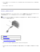 シリアルコネクタ — マウスやハンドヘルドデバイスなどのシリアルデバイスを接続します。 PS/2 コネクタ(2) — マウス、キーボード、外付けテンキーパッドなどの PS/2 互換デバイスを接続します。PS/2 互換デバイス の取り付け、取り外しを行う前に、コンピュータをシャットダウンします。デバイスが使用できない場合は、デバイスに付属の フロッピーディスクまたは CD からデバイスドライバをインストールして、コンピュータを再起動します。内蔵キーボードと外 付けキーボードを同時に使用できます。PS/2 キーボードまたは PS/2 テンキーパッドを接続すると、内蔵キーパッドが無効にな ります。 S/PDIF コネクタ — オーディオ(S/PDIF)ケーブルを接続します。 USB 2.0 コネクタ — USB マウスなどの USB 2.