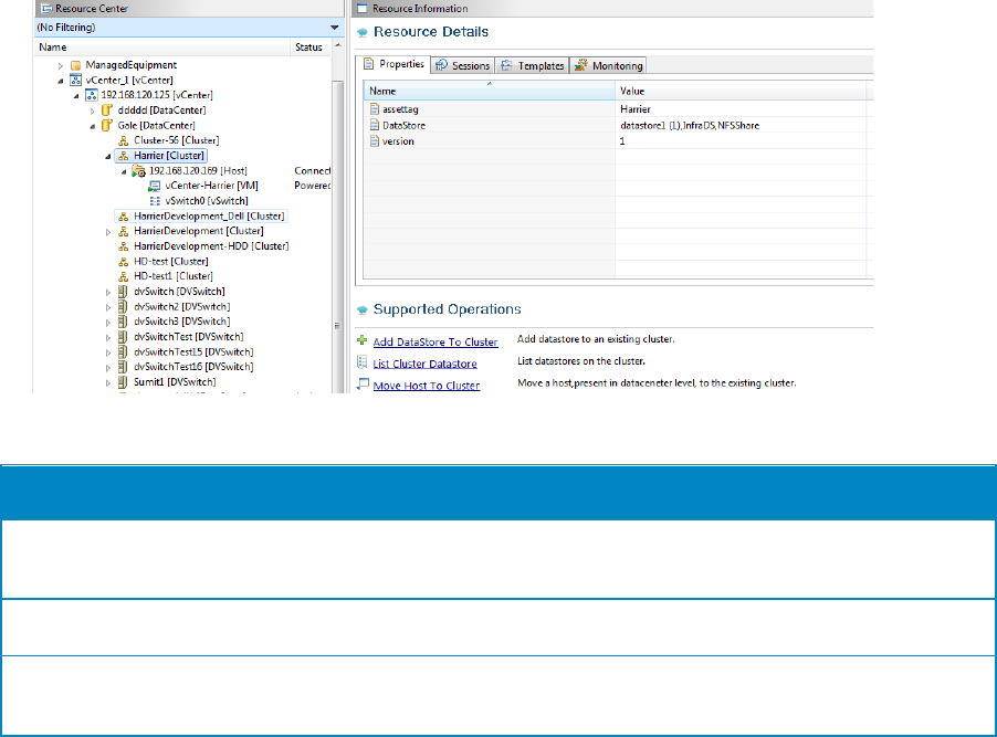 Table 12. VMware Cluster Operations