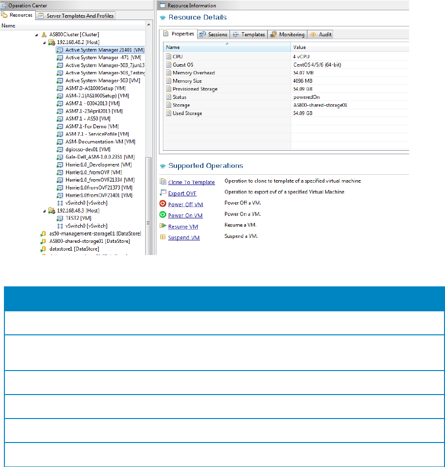 Table 14. VMware Virtual Machines operations