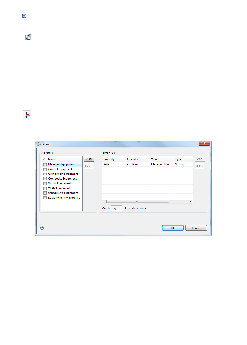 To access the Filters dialog box, in the top-right part of an associated navigator view, click the Filters icon.