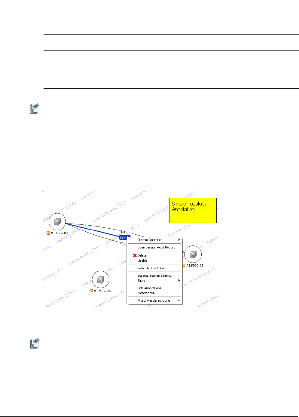 • To disable: With a session open, click the session editor, right-click one or more session links and