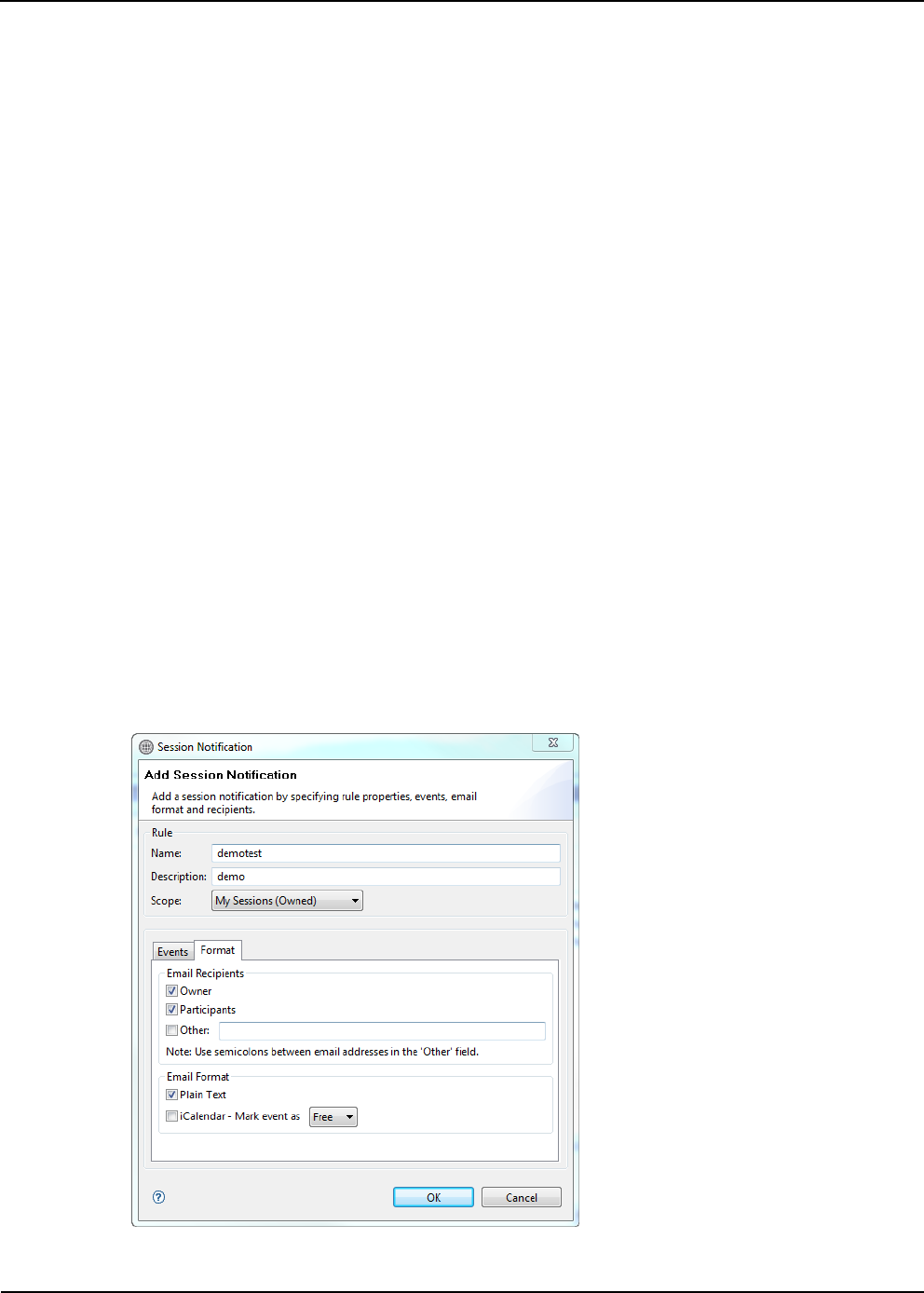 The Add Session Notification—Format Tab dialog box displays; see Figure 12-53.