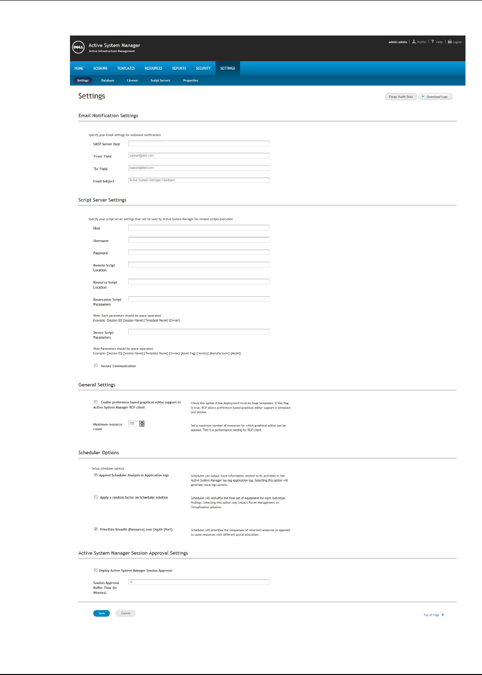Figure 16-1 Settings Main Page (Email Notification, Script Server)