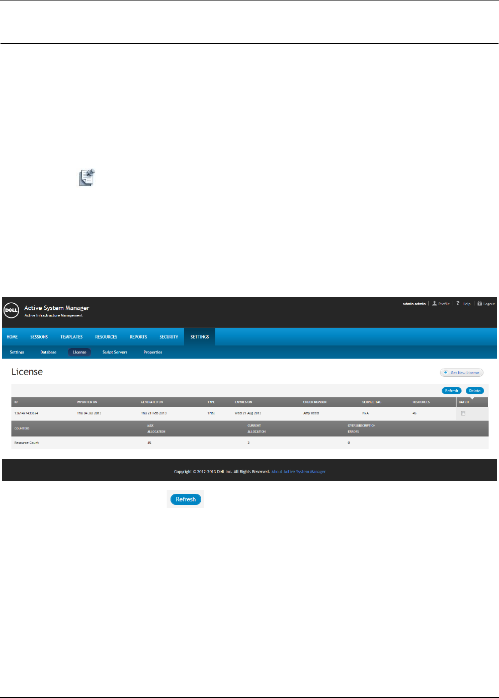 1. On the Active System Manager menu bar, click Settings > License to display the current licensing