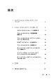 目次 1 Dell™ E-Flat パネルスタンドに ついて . . . . . . . . . . . . . . . . . . . . . . . . . . . . 5 2 E-Flat パネルスタンドの使い方 . . . . . . 9 ライザーをスタンドのベースに接続する フラットパネルモニターの重量制限を 調整する . . . . . . . . . . . . . . . . . . . . . . . . . . . . . 11 . . . . . . . 12 . . . . . . . . 16 VESA® アダプタプレートを使用する フラットパネルモニターを調整する ポートリプリケータをフラットパネルスタ ンドに接続する . . . . . . . . . . . . . . . . ラップトップをポートリプリケータとフ ラットパネルスタンドから取り外す . . . . . . . 16 . . . . . 18 ポートリプリケータをフラットパネルスタン ドから取り外す . . . . . . . . . . . . . . . . . .