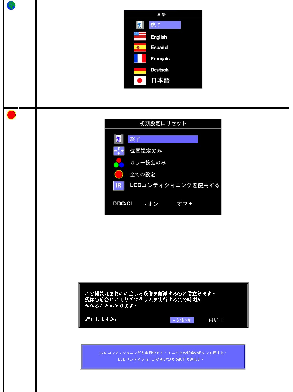 注意: モニタのボタンをどれか押すと、LCD条件設定が終了できます。