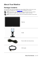Contents About Your Monitor . . . . . . . . . . . . . . . . . . . . . . . . . . . . . 5 Package Contents . . . . . . . . . . . . . . . . . . . . . . . . . . . . 5 Features . . . . . . . . . . . . . . . . . . . . . . . . . . . . . . . . . . 7 Parts and Controls . . . . . . . . . . . . . . . . . . . . . . . . . . . . 8 Specifications . . . . . . . . . . . . . . . . . . . . . . . . . . . . .