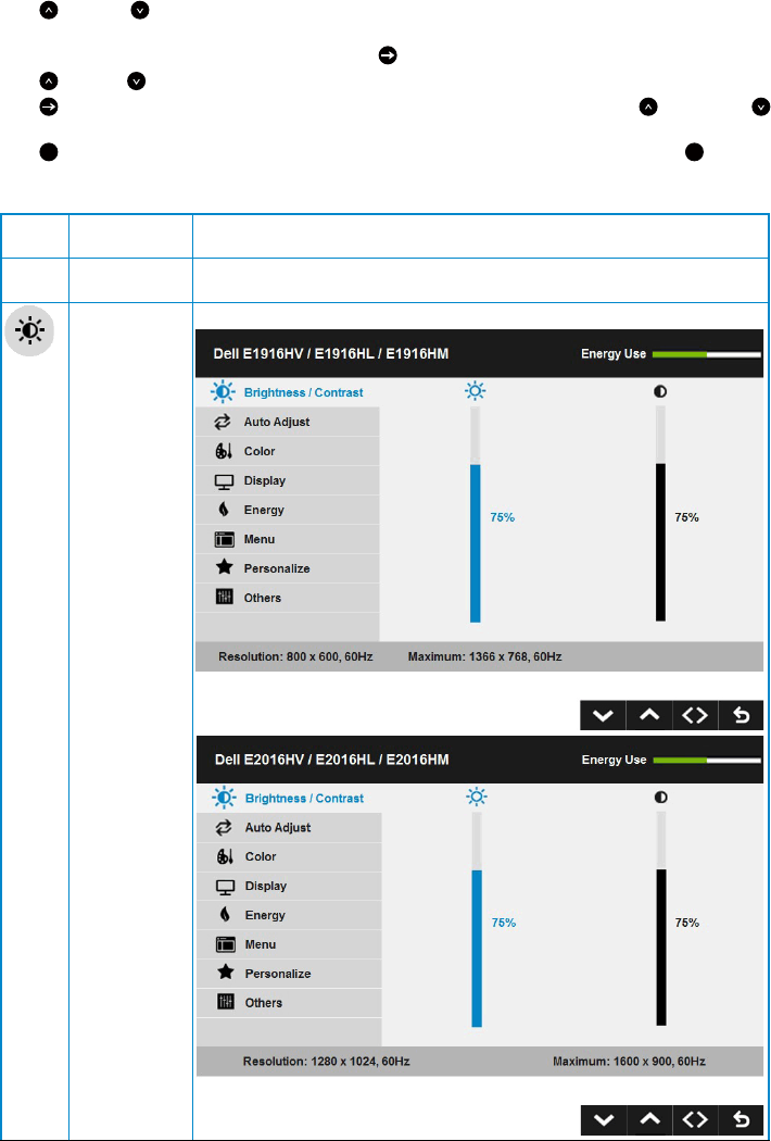 버튼과 버튼을 눌러 메뉴에서 옵션 사이에서 전환합니다 . 한 아이콘에서 다른