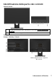 Veduta inferiore Etichetta Descrizione Uso 1 Connettore di alimentazione CA Per collegare il cavo di alimentazione del monitor. 2 Connettore DisplayPort Per collegare il computer al monitor usando un cavo DisplayPort. 3 Connettore VGA Per collegare il computer al monitor usando il cavo VGA. 4 Staffe di montaggio della Dell Soundbar Per fissare la Soundbar Dell optional.