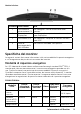 E2016H: Modalità di visualizzazione Pixel Clock Frequenza Frequenza (Frequenza orizzontale verticale pixel) (kHz) (kHz) (MHz) Polarità di sincronia (Orizzontale/ Verticale) VESA, 720 x 400 31,5 70,1 28,3 -/+ VESA, 640 x 480 31,5 59,9 25,2 -/- VESA, 640 x 480 37,5 75,0 31,5 -/- VESA, 800 x 600 37,9 60,3 40,0 +/+ VESA, 800 x 600 46,9 75,0 49,5 +/+ VESA, 1024 x 768 48,4 60,0 65,0 -/- VESA, 1024 x 768 60,0 75,0 78,8 +/+ VESA, 1152 x 864 67,5 75,0 108,0 +/+ VESA, 1280