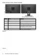 E2216H / E2316H / E2316Hr / E2416H / E2416HM: Mặt sau cùng giá đỡ màn hình Nhãn Mô tả Sử dụng Để lắp đặt màn hình. 2 Lỗ lắp đặt theo VESA (100 mm) Nhãn công suất quy định 3 Khe khóa an toàn 4 Nhãn số serial mã vạch 5 Khe quản lý cáp 1 Mặt bên Mặt phải 8 Giới thiệu về màn hình của bạn Liệt kê các thông số phê duyệt theo quy định. Giữ chặt màn hình bằng khóa an toàn (khóa an toàn không kèm theo màn hình).