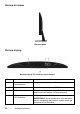 Изглед отстрани Дясна страна Изглед отдолу Изглед отдолу без стойката на монитора Етикет 10 Описание Използвай 1 Конектор за захранването Свържете захранващия кабел. 2 DisplayPort Свържете компютъра си с DP кабел. 3 VGA конектор Свържете компютъра си към VGA кабел (включен кабел освен в Северна и Южна Америка). 4 Монтажни гнезда на Dell Soundbar За прикрепване на Dell Soundbar като опция.