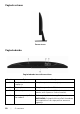 Pogled sa strane Desna strana Pogled odozdo Pogled odozdo bez stalka monitora Oznaka 10 Opis Namjena 1 Priključnica kabela za napajanje Priključivanje kabela za napajanje. 2 DisplayPort Priključivanje računala DP kabelom. 3 VGA priključnica Priključivanje računala VGA kabelom (kabel u paketu, osim Sjeverne i Južne Amerike). 4 Utori za ugradnju Dell Soundbara Služi za priključak dodatnog Dell Soundbara.