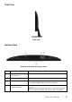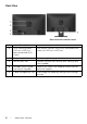 Side View Right Side Bottom View Bottom view without monitor stand Label Description Use 1 Power cable connector Connect the power cable. 2 DisplayPort Connect your computer with DP cable. 3 VGA connector Connect your computer with VGA cable (cable included, except North & South America). 4 Dell Soundbar mounting slots Attaches the optional Dell Soundbar. NOTE: Please remove the plastic strip covering the mounting slots before affixing the Dell Soundbar.