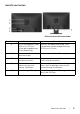 Komponenten und Bedienelemente Vorderseite Bedienelemente an der Vorderseite Bezeichnung 8 | Beschreibung 1 Funktionstasten (weitere Informationen finden Sie unter Monitor bedienen) 2 Ein/Aus-Taste (mit LED-Anzeige) Über Ihren Monitor
