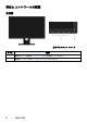 部品とコントロールの確認 正面図 前面パネルのコントロール ラベル 8 説明 1 機能ボタン(詳細は、モニターの操作を参照してください) 2 電源オン / オフ ボタン(LED インジケーター付き) | 製品の特徴
