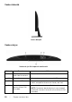 Vedere laterală Latura dreaptă Vedere de jos Vedere de jos fără suportul monitorului Etichetă 10 Descriere Utilizare 1 Conector pentru cablul de alimentare Conectați cablul de alimentare. 2 DisplayPort Conectați computerul cu un cablu DP. 3 Conector VGA Conectați computerul cu un cablu VGA (inclusiv cablul, exceptând America de Nord şi de Sud). 4 Fante de montare pentru difuzor Dell Soundbar Atașează difuzorul opțional Dell Soundbar.