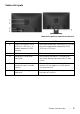 Identificarea componentelor și comenzilor Vedere din față Comenzi de pe panoul din față Etichetă 8 Descriere 1 Butoane cu funcții (pentru informații suplimentare, consultați Utilizarea monitorului) 2 Buton Pornit/Oprit (cu indicator LED) | Despre monitorul dvs.