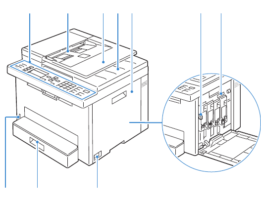 3 Plateau d'alimentation en documents 8 Interrupteur d'alimentation