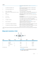 Kolík Signál Kolík Signál 1 TX- 6 Není k dispozici 2 TX+ 7 Není k dispozici 3 RX+ 8 Není k dispozici 4 RX– 9 Není k dispozici 5 GND Číslo dílu výrobce ACES 59131-0093C-P01 https://acesna.com/ POZNÁMKA Toto číslo dílu slouží pouze k referenčním účelům a může se změnit. Systémové indikátory Funkce 1 Indikátor stavu sítě jedna Oznamuje aktivitu na síťovém portu jedna. 2 Indikátor stavu sítě dva Oznamuje aktivitu na síťovém portu dva.