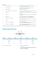 2 Funktioner Set fra toppen Funktioner 1 Forreste adgangsdør Løsn den fastmonterede skrue, der fastgør den forreste adgangsdør til chassiset. Fjern den forreste adgangsdør for at få adgang til harddisken, solid-state-drevet eller SIM-kortslottet. 2 USB 3.0-port Tilslut en USB-aktiveret enhed. Giver dataoverførselshastigheder op til 5 Gbps. 3 Hård nulstilling Brug en stift til at trykke på knappen inde i stifthullet for at genstarte den integrerede boks-pc.