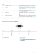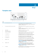 5 Spesifikasi Dimensi dan berat Panjang 246 mm (9,69 inci) Lebar 270 mm (10,63 inci) Tinggi 107,20 mm (4,22 inci) Berat 5,80 kg (12,80 lb) Informasi sistem Nomor model PC Kotak Tertanam 5000Dell Prosesor • • • • Intel Celeron G3900E Intel Core i3-6100E Intel Core i5-6440EQ Intel Core i7-6820EQ CATATAN Tergantung pada beban kerja, konfigurasi Intel Core i7 generasi ke-4 dapat terhambat di suhu pengoperasian di atas 35 °C (95 °F).