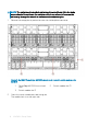 NOTE: The switch module works in switch module slots C1 and C2 in the blade server chassis. Do not insert the switch module in any other slot because this action may damage the chassis or switch module connector pins. 1 Remove the orange plastic protective cover for the backplane connector. Figure 2. Dell EMC PowerEdge MX7000 chassis back view with switch module slots marked 2 1 PowerEdge MX7000 chassis back view 3 Switch module slot C1 Orient the switch module port side facing you.
