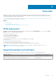 Notes, cautions, and warnings NOTE: A NOTE indicates important information that helps you make better use of your product. CAUTION: A CAUTION indicates either potential damage to hardware or loss of data and tells you how to avoid the problem. WARNING: A WARNING indicates a potential for property damage, personal injury, or death. © 2018 - 2020 Dell Inc. or its subsidiaries. All rights reserved. Dell, EMC, and other trademarks are trademarks of Dell Inc. or its subsidiaries.