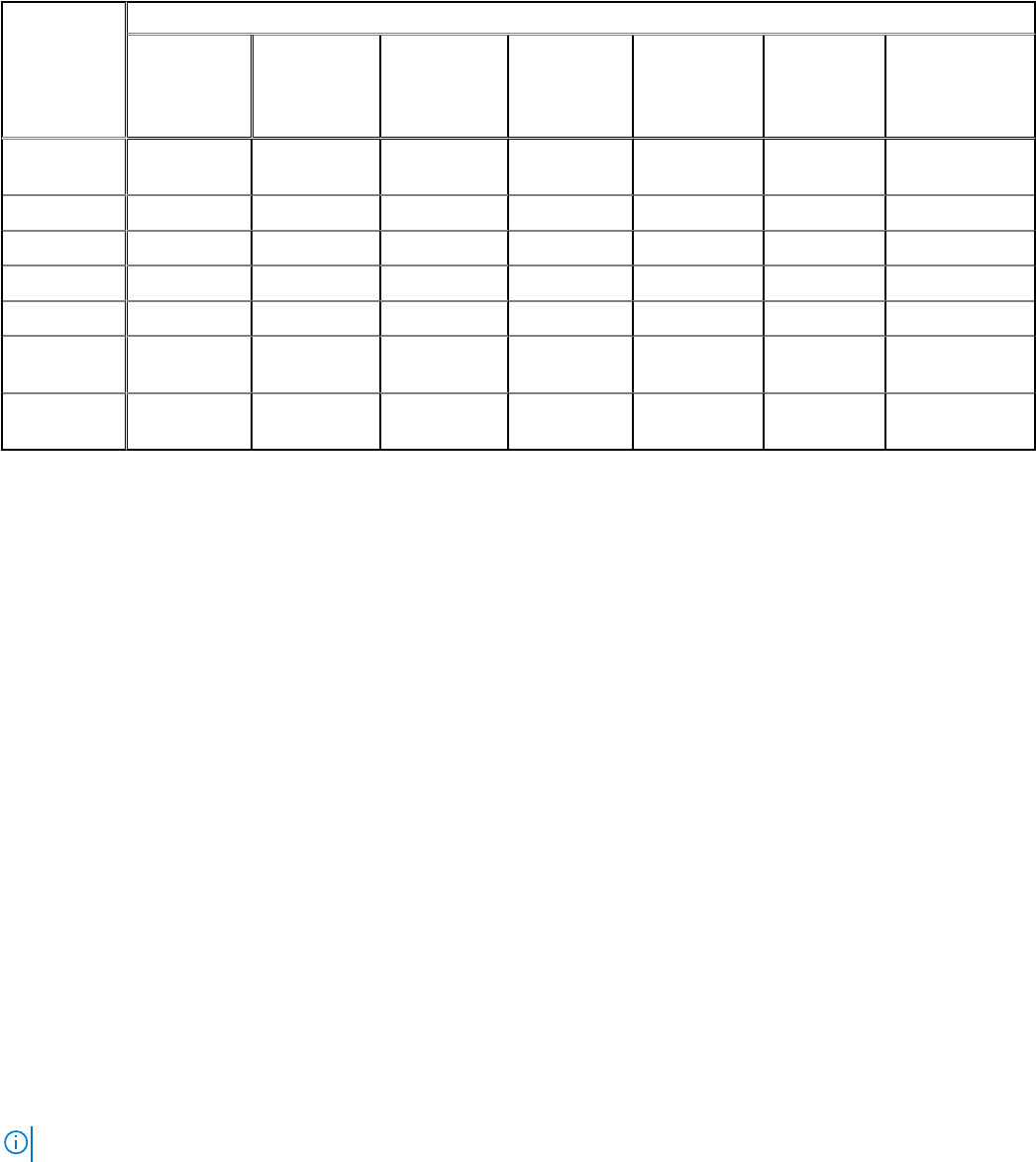 表 13. 検出用のプロトコル サポート マトリックス (続き)