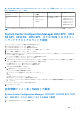 表 1. Dell EMC Server Deployment Pack のインストールに対応するオペレーティングシステムのリスト オペレーティングシステム Configuration Manager サイトサーバーの サポート Configuration Manager 管理コンソールの サポート Windows 8.1 Windows 8 Pro x64 Windows 8 Enterprise x64 Microsoft Windows 7 x86 および x64 Microsoft Windows Vista Business Edition x86 および x64 SP1 対応システム Dell の対応システムに関する情報は、Dell.com/support/manuals で Dell EMC Server Deployment Pack 4.