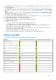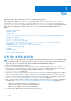 참고, 주의 및 경고 노트: 참고"는 제품을 보다 효율적으로 사용하는 데 도움이 되는 중요 정보를 제공합니다. 주의: 주의사항은 하드웨어의 손상 또는 데이터 유실 위험을 설명하며, 이러한 문제를 방지할 수 있는 방법을 알려줍니다. 경고: 경고는 재산 손실, 신체적 상해 또는 사망 위험이 있음을 알려줍니다. Copyright © 2009 - 2017 Dell Inc. 또는 자회사. All rights reserved. Dell, EMC 및 기타 상표는 Dell Inc. 또는 자회사의 상표입니다. 기타 상표는 각 소 유자의 상표일 수 있습니다.