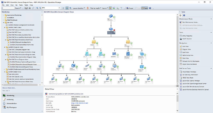 - 在 Operations Manager 主控台檢視 Dell EMC 伺服器與機架工作站 (授權) 功能的 Dell EMC 圖表檢視