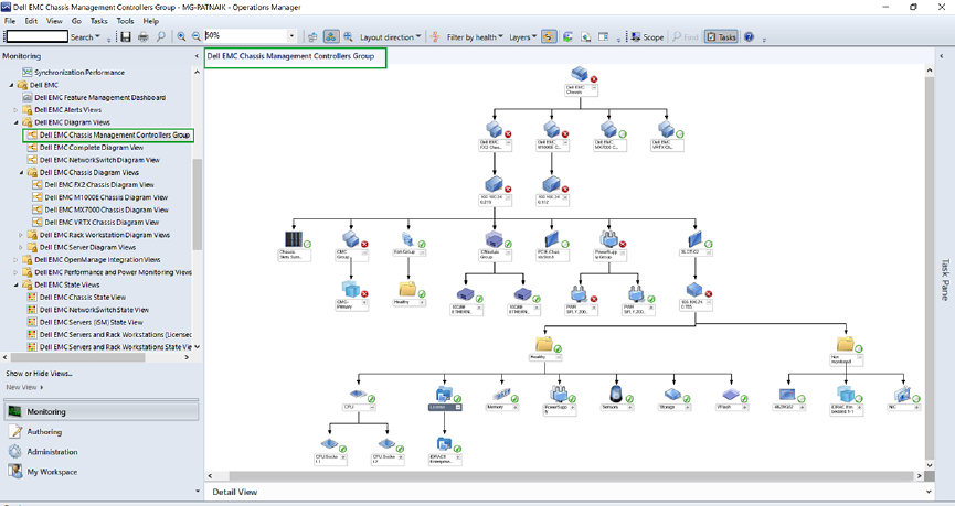 1. 啟動 Operations Manager 主控台並按一下監視 > Dell EMC > Dell EMC 圖表檢視。