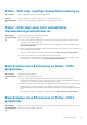 2 Weitere Problem In diesem Abschnitt werden Fehler beschrieben, die während der Bereitstellung, während der Systemverwaltung oder während einer Aktualisierung auftreten können. Themen: • • • Probleme bei der Bereitstellung Probleme bei der Verwaltung Aktualisierungsprobleme Probleme bei der Bereitstellung Standardkennwort fehlt Beschreibung Das Standardkennwort des Systems kann nicht gefunden werden. Problemumgehun g Das Standardkennwort Ihrer Dell Storage-Lösung ist Stor@ge!.