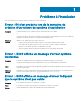 Remarques, précautions et avertissements REMARQUE : Une REMARQUE indique des informations importantes qui peuvent vous aider à mieux utiliser votre produit. PRÉCAUTION : Une PRÉCAUTION indique un risque d'endommagement du matériel ou de perte de données et vous indique comment éviter le problème. AVERTISSEMENT : Un AVERTISSEMENT indique un risque d'endommagement du matériel, de blessures corporelles ou même de mort.