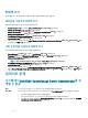 작업 설명서 위치 iDRAC 기능, iDRAC 구성 및 로그인, 원격 시스템 관리에 대한 정보는 Integrated Dell Remote Access Controller 사용 설명서를 참조하십시오. www.dell.com/idracmanuals RACADM(Remote Access Controller Admin) 하위 www.dell.com/idracmanuals 명령 및 지원되는 RACADM 인터페이스 이해에 대한 자세한 내용은 iDRAC용 RACADM 명령줄 참 조 설명서를 참조하십시오. 드라이버 및 펌웨어 업데이트에 관한 정보입니 다. www.dell.com/support/drivers 시스템 문제 해결 하드웨어 문제 해결에 관한 정보는 Windows www.dell.com/storagemanuals Storage Server 2016을 사용하는 Dell EMC Network Attached Storage 시스템 문제 해결 안내 서를 참조하십시오.