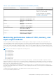 To monitor the performance index of CPU, memory, and I/O modules, in the iDRAC web interface, go to System >