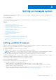 iDRAC. You can set up the IP address using one of the following interfaces: