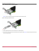 Emulex Fibre Channel Host Bus Adapters Installation Guide Figure 4: Releasing the Latch on an Optical Transceiver Figure 5 shows an extracted transceiver and another transceiver latched in place. Figure 5: Removing an Optical Transceiver 3. Observing ESD precautions, store the transceiver in an ESD-safe place. 4. Remove the mounting bracket screws and washers from the top of the HBA. Figure 6 shows the screws that are removed from the mounting bracket.