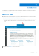 Notes, cautions, and warnings NOTE: A NOTE indicates important information that helps you make better use of your product. CAUTION: A CAUTION indicates either potential damage to hardware or loss of data and tells you how to avoid the problem. WARNING: A WARNING indicates a potential for property damage, personal injury, or death. © 2012-2021 Dell Inc. All rights reserved.